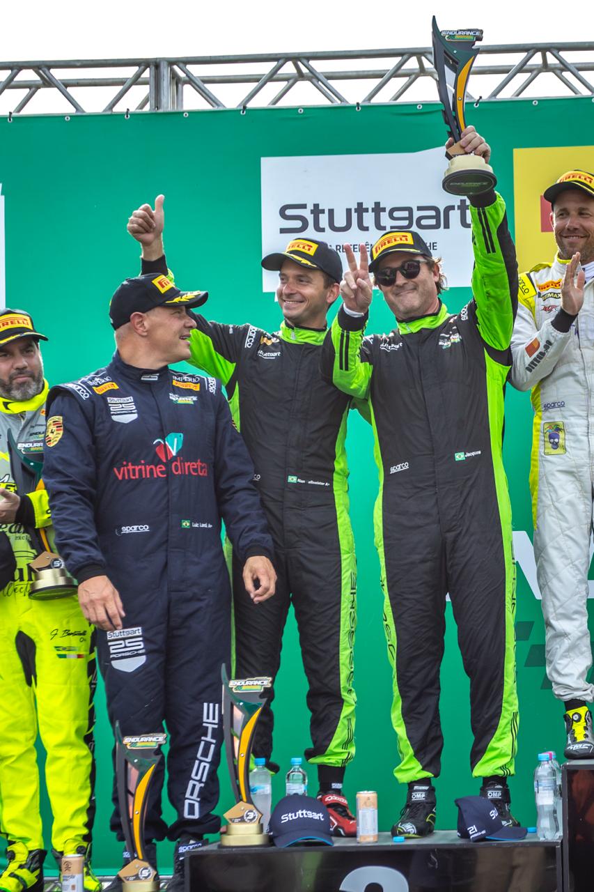 Além de largar na pole position da classe, à frente do Mercedes-Benz AMG GT3 de André Rosário/Miguel Rosário/Enzo Elias, o 911 GT3 R do trio formado por Visconde, Mauricio e Müller venceu de ponta a ponta. Para os quatro carros da Stuttgart Motorsport na GT4, o fim de semana foi bem mais movimentado. Nas primeiras voltas da corrida, a disputa pela liderança envolveu os Porsches 718 Cayman GT4 Clubsport MR números 718, de Alcaraz/Horta/Freire, e 982, de Marcelo Figueiredo/Márcio Kumruian/Rogério Rodrigues. Ambos se revezaram na liderança até a primeira janela de pit stops.