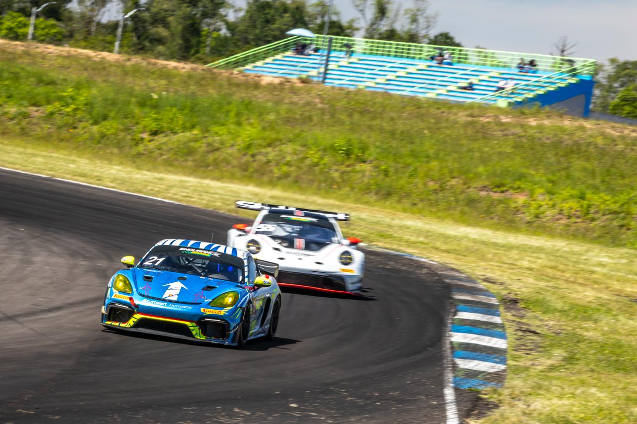 Além de largar na pole position da classe, à frente do Mercedes-Benz AMG GT3 de André Rosário/Miguel Rosário/Enzo Elias, o 911 GT3 R do trio formado por Visconde, Mauricio e Müller venceu de ponta a ponta. Para os quatro carros da Stuttgart Motorsport na GT4, o fim de semana foi bem mais movimentado. Nas primeiras voltas da corrida, a disputa pela liderança envolveu os Porsches 718 Cayman GT4 Clubsport MR números 718, de Alcaraz/Horta/Freire, e 982, de Marcelo Figueiredo/Márcio Kumruian/Rogério Rodrigues. Ambos se revezaram na liderança até a primeira janela de pit stops.